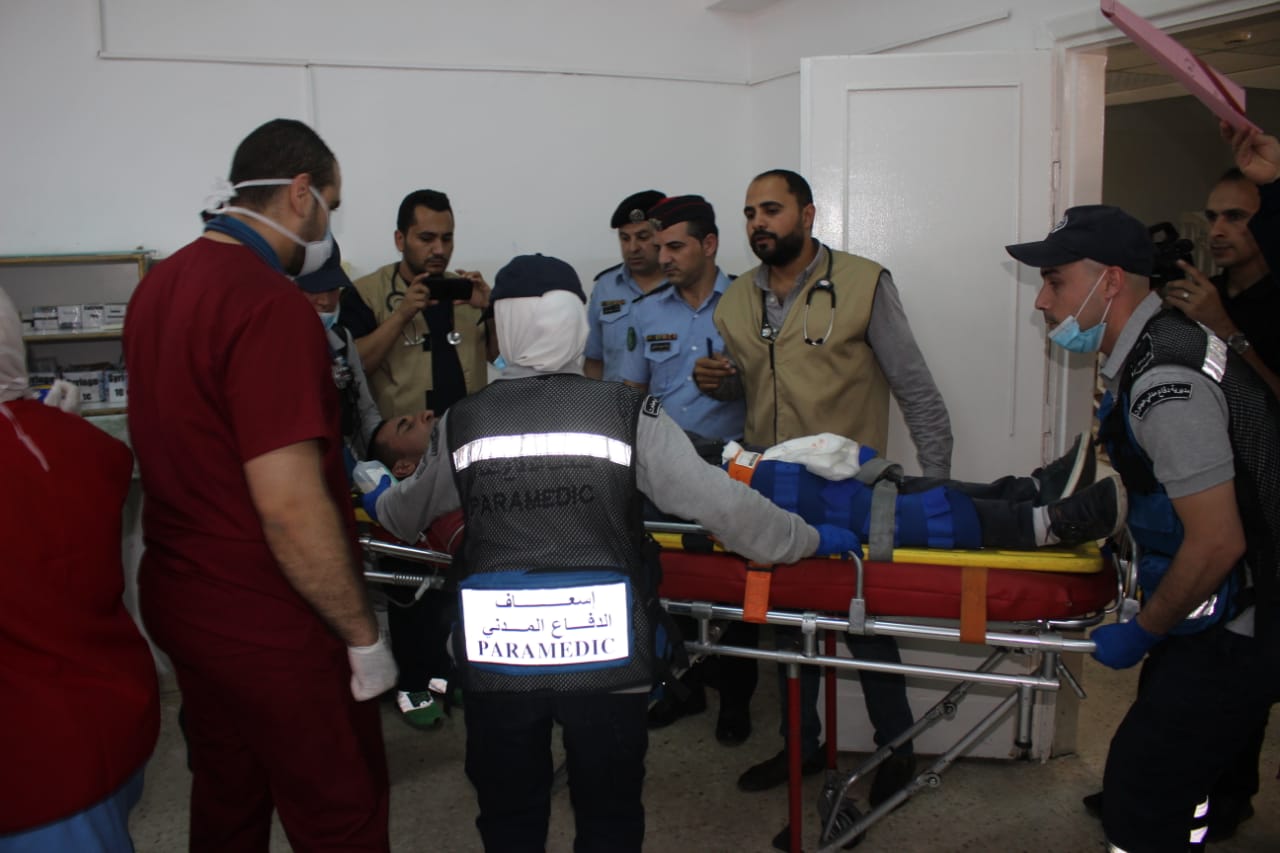 وقامت كوادر الإسعاف في مديرية دفاع مدني عجلون بالتعامل مع الإصابات من حيث تصنيفها وتقديم الإسعافات الأولية اللازمة لها