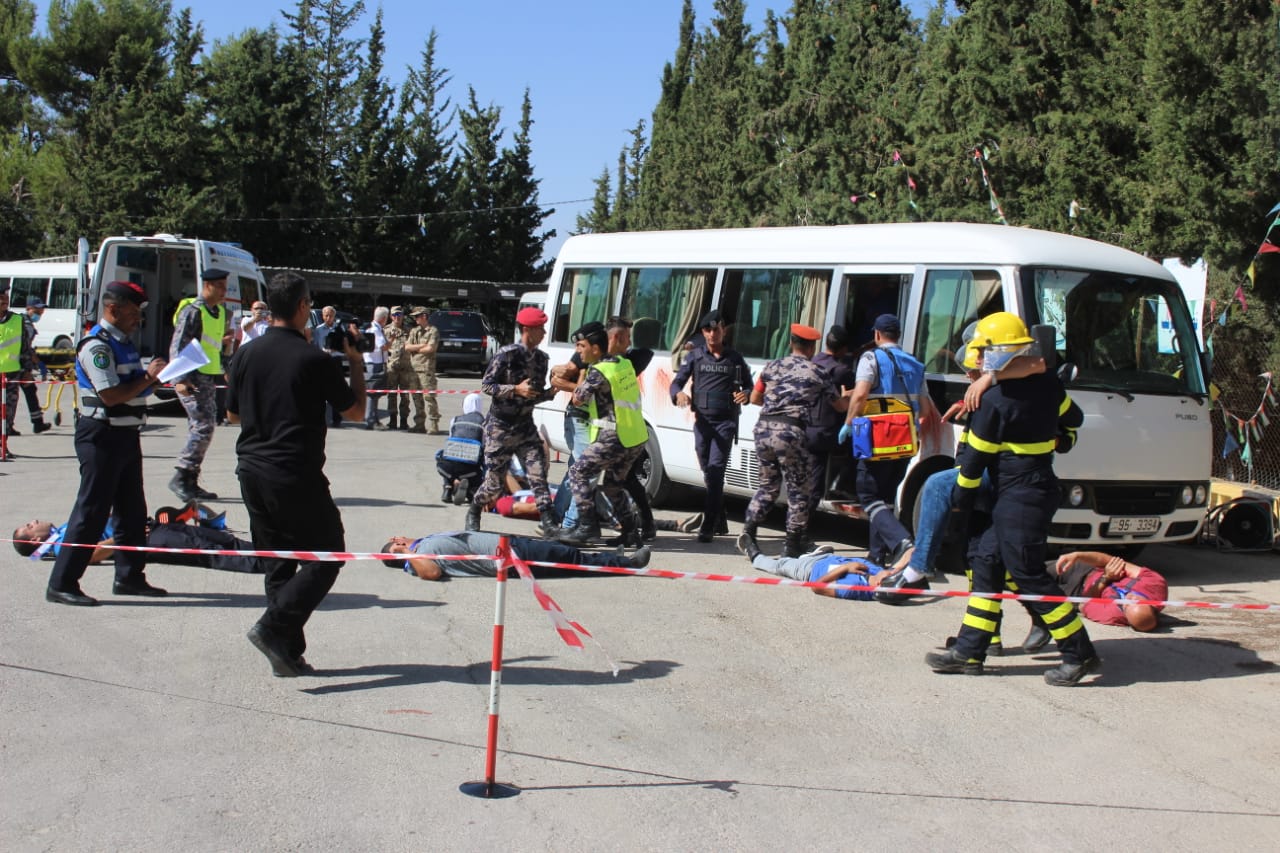 وحضر التمرين مدير المكتب الألماني الفدرالي للحماية المدنية ومحافظ عجلون ومفتش عام الدفاع المدني وعدداً من ممثلي المؤسسات والأجهزة الأمنية .