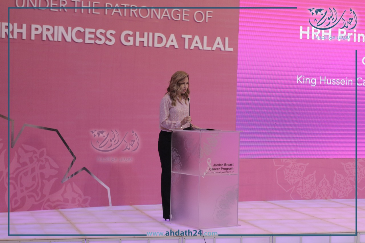 أحداث اليوم - رعت الأميرة غيداء طلال، رئيسة هيئة أمناء مؤسسة ومركز الحسين للسرطان، الحفل الذي أقامه البرنامج الأردني لسرطان الثدي، يوم الأحد، لإطلاق الحملة العربية الرابعة للتوعية بسرطان الثدي، تحت شعار «ما تنسي الأعراض.. افحصي».