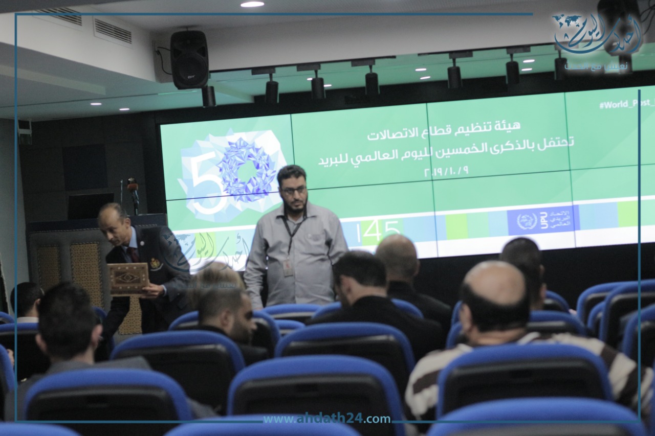 وفي كلمته التي ألقاها رئيس مجلس مفوضي الهيئة الدكتور المهندس غازي الجبور خلال الحفل أشار إلى أن انعقاد الاحتفالية يأتي على هامش احتفال دول العالم بيوم البريد العالمي في الذكرى الخمسين له والذي يصادف التاسع من شهر تشرين أول من كل عام، وذلك تأكيداً على زيادة الوعي بدور البريد الذي يقوم به في الحياة اليومية للأفراد والشركات، فضلاً عن مساهمته في التنمية الاجتماعية والاقتصادية العالمية وعلى مر العصور كونه وسيلة الاتصالات الأولى والأقدم. وبين الدكتور الجبور أن تبنّي اتحاد البريد العالمي شعار"على درب التنمية" ليكون شعار البريد للعام الحالي والذي يصادف أيضاً الذكرة 145 عام على تأسيس الاتحاد جاء لتعزيز دور الاتحاد البريدي العالمي وأهميته وتسليط الضوء على الروابط الوثيقة بين الاتحاد البريدي العالمي وعائلة الأمم المتحدة، بما في ذلك الجهود العالمية لتحقيق خطة التنمية المستدامة لعام 2030.