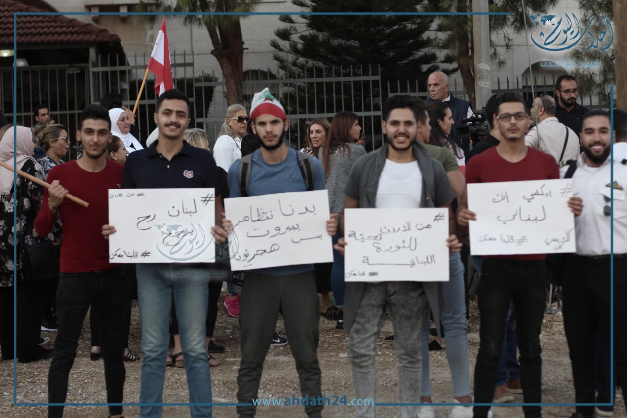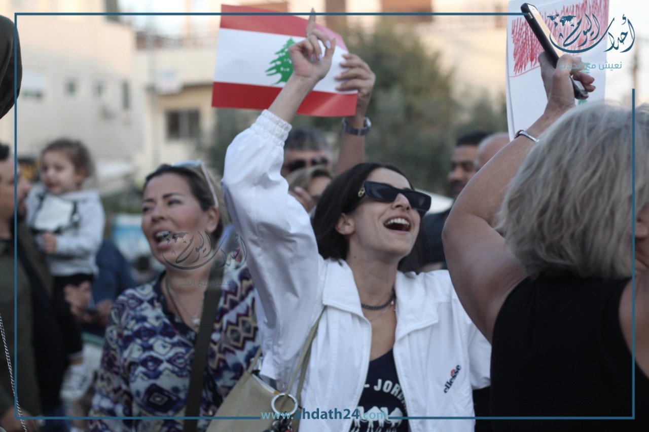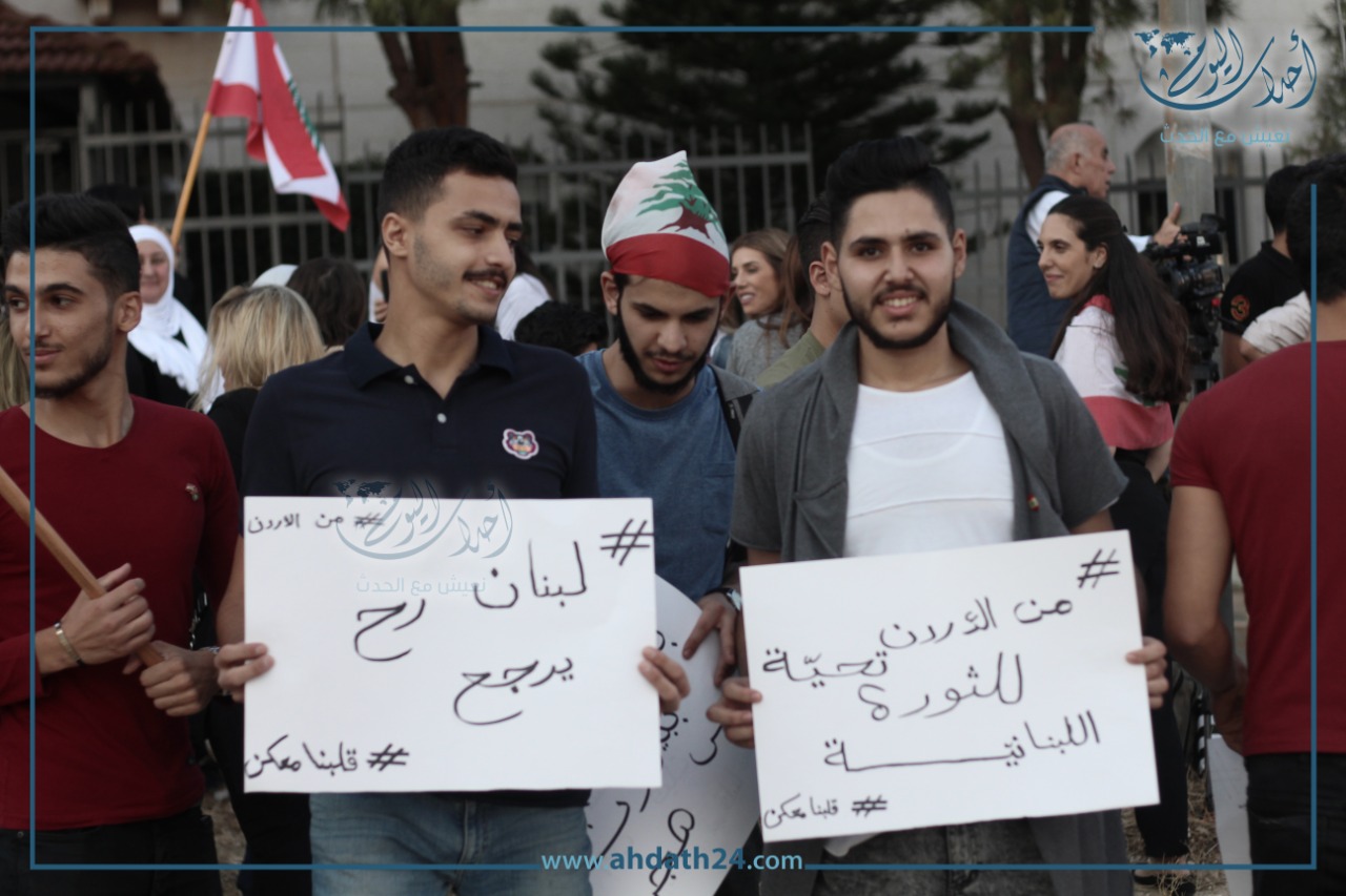 نظم مواطنون وعدد من أبناء الجالية اللبنانية في الأردن، مساء الأحد، وقفة تضامنية مع الاحتجاجات في لبنان أمام السفارة اللبنانية في عمّان.