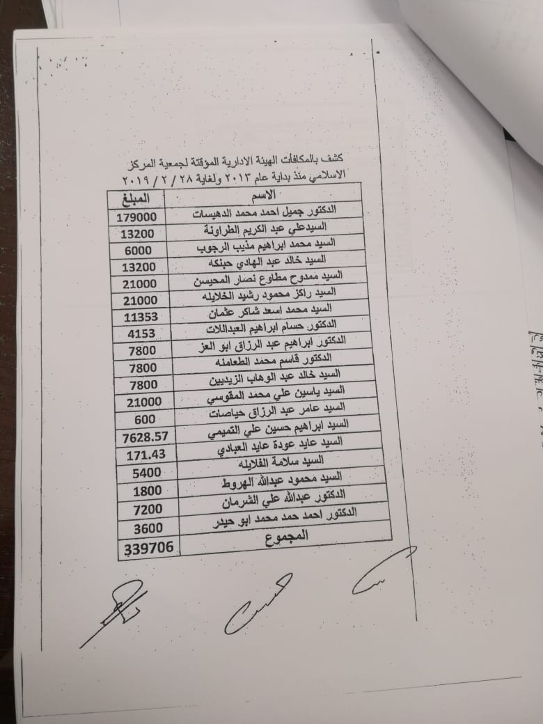 يشار إلى أن الحكومة شكلت هيئات مؤقتة لإدارة جمعية المركز الإسلامي الخيرية منذ العام 2006 حتى تاريخه، وأنفقت عليها من موازنة الدولة مبالغ تقارب المليون دينار، في حين يمنع قانون الجمعيات الخيرية الهيئات الإدارية المنتخبة من تقاضي أي أجور ومكافآت ورواتب، فيما امتنعت الهيئات المؤقتة التي عينتها الحكومة منذ العام 2006 حتى اللحظة عن عقد اجتماعات للهيئة العامة للجمعية لمناقشة التقارير المالية والإدارية للجمعية