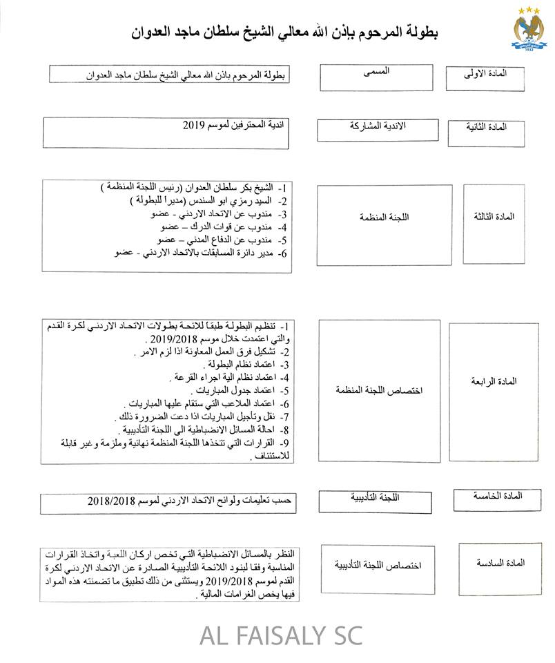 أحداث اليوم - أجرى النادي الفيصلي اليوم السبت قرعة البطولة الودية التي ينظمها النادي بمشاركة 11 فريقاً.