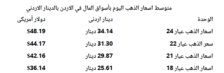 ارتفاع اسعار الذهب محليا 40 قرشا .. وعيار الـ 21 عند 80.70 دينارا