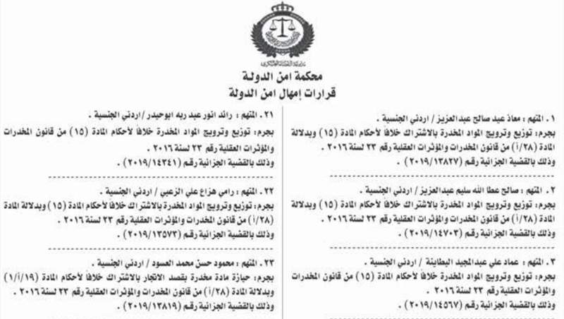 أحداث اليوم - أمهلت محكمة أمن الدولة 47 متهما عشرة ايام من تاريخ الاحد لتسليم انفسهم إلى السلطات القضائية المختصة لمحاكمتهم عن التهم المسندة لكل منهم.