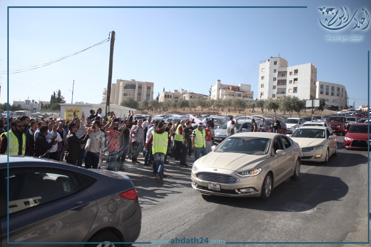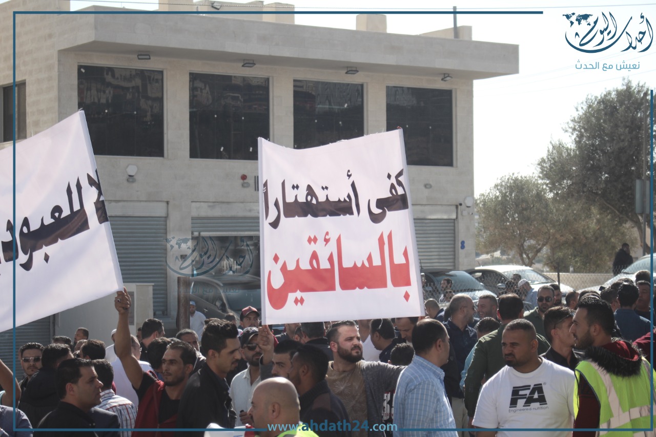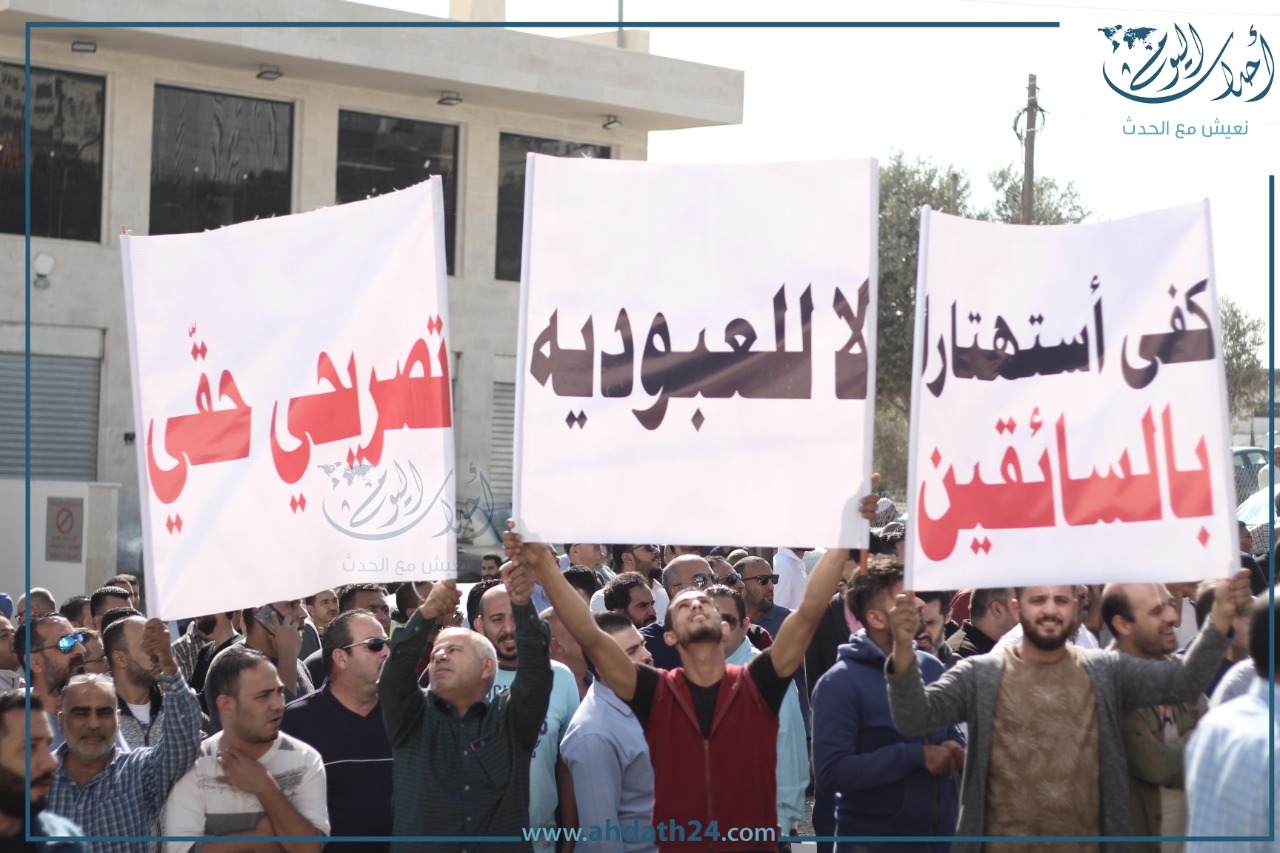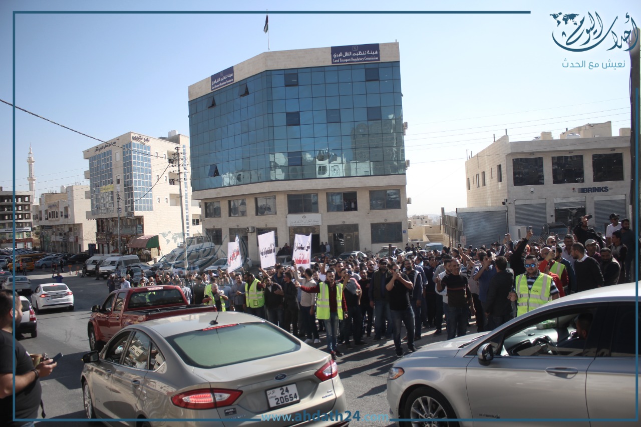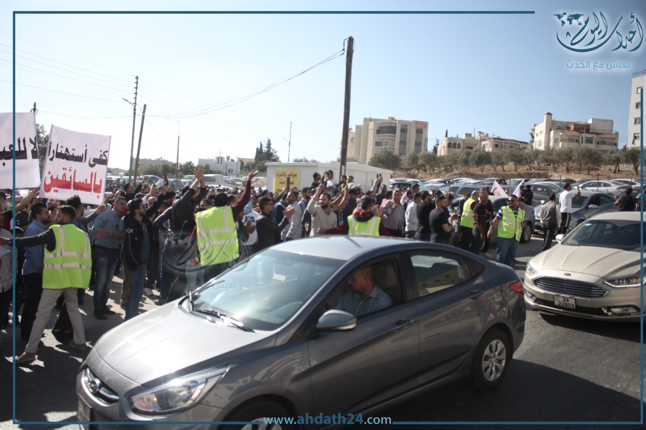 تصوير أحمد حمدان - اعتصم عشرات سائقي التطبيقات الذكية صباح الأحد أمام هيئة تنظيم النقل البري للمطالبة بوقف بعض ممارسات الشركات.