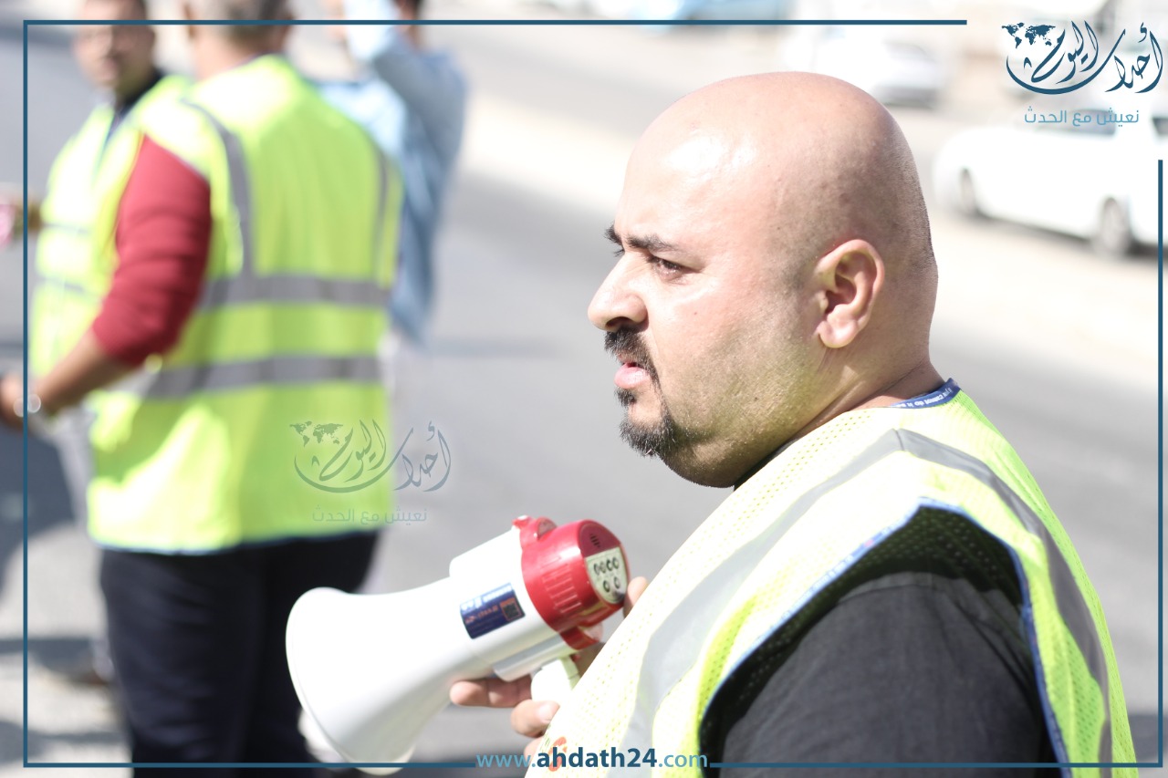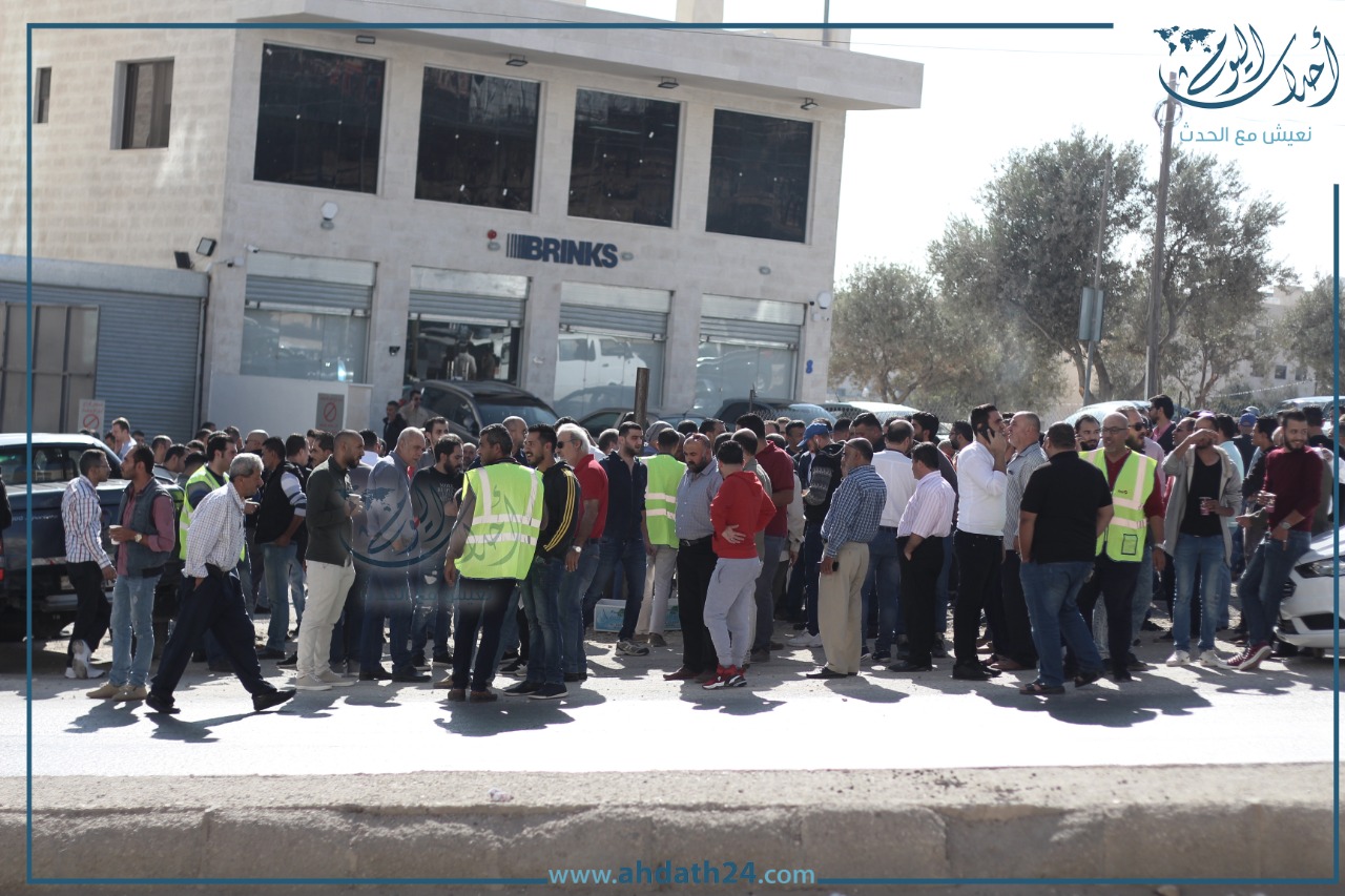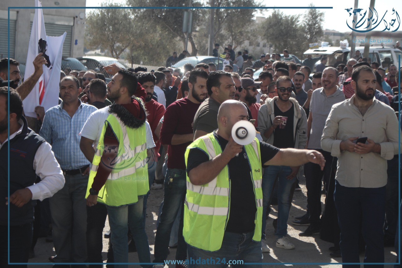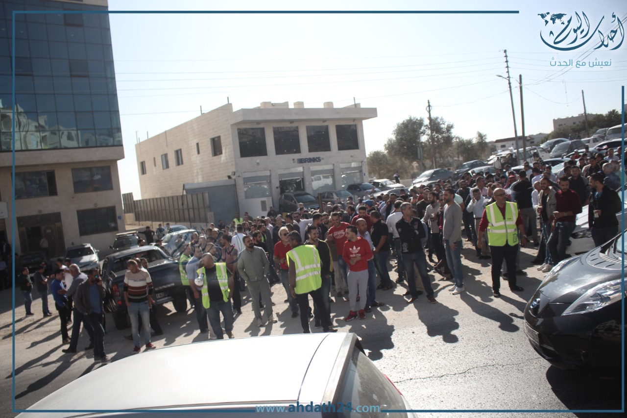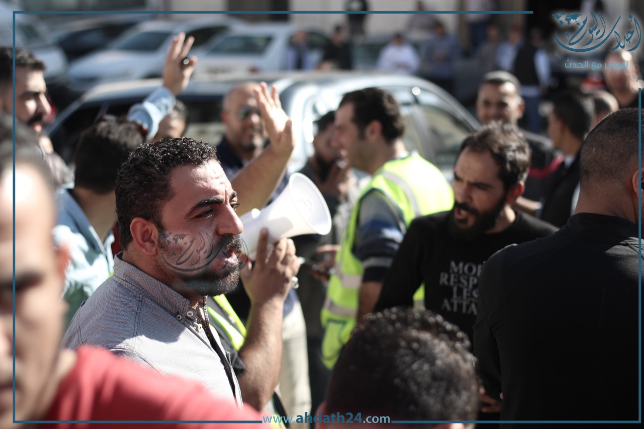 تصوير أحمد حمدان - اعتصم عشرات سائقي التطبيقات الذكية صباح الأحد أمام هيئة تنظيم النقل البري للمطالبة بوقف بعض ممارسات الشركات.