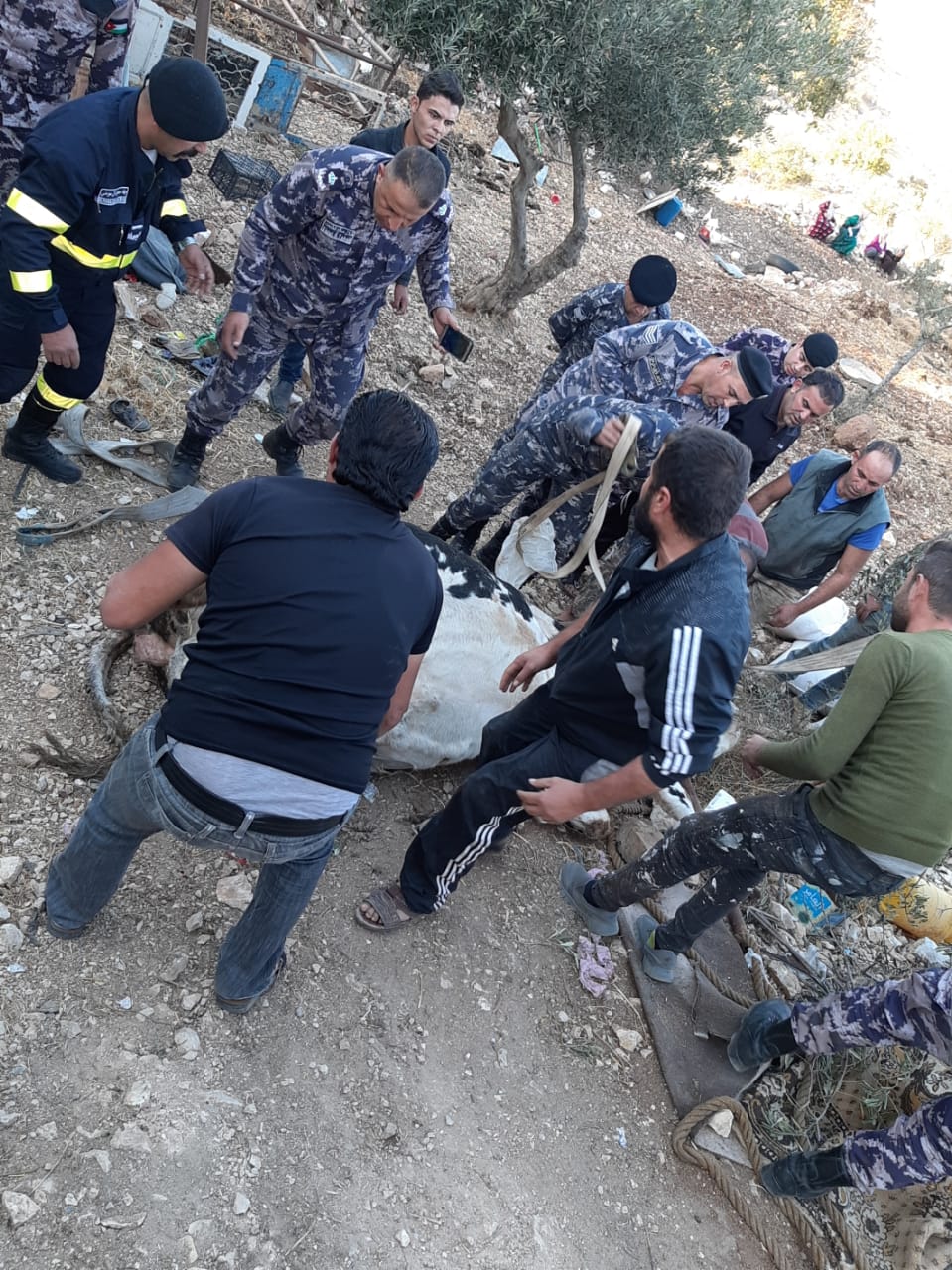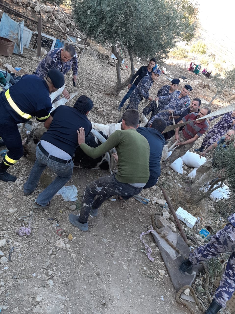 انقاذ بقرة سقطت بحفرة في عجلون -صور