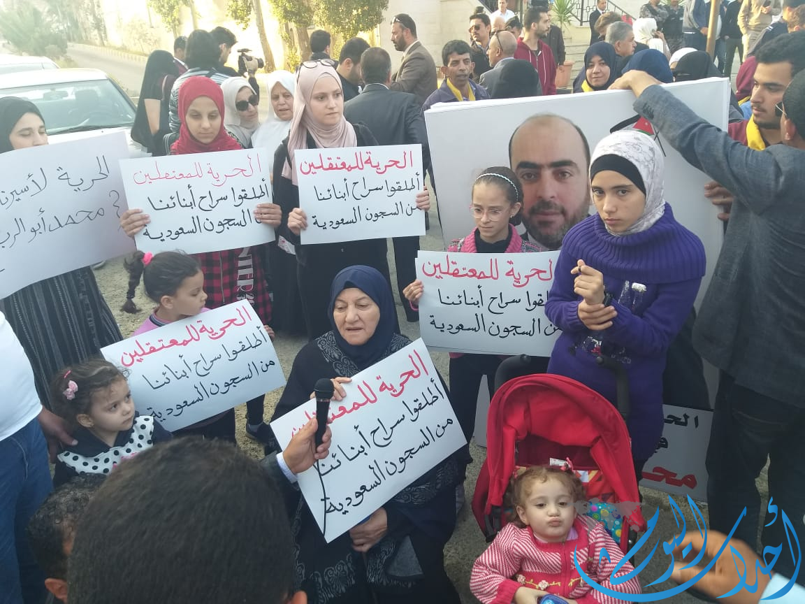 ورفع المعتصمون يافطات طالبت الحكومة الأردنية باتخاذ إجراءاتها مع السعودية، وإطلاق سراح المعتقلين باسرع وقت.