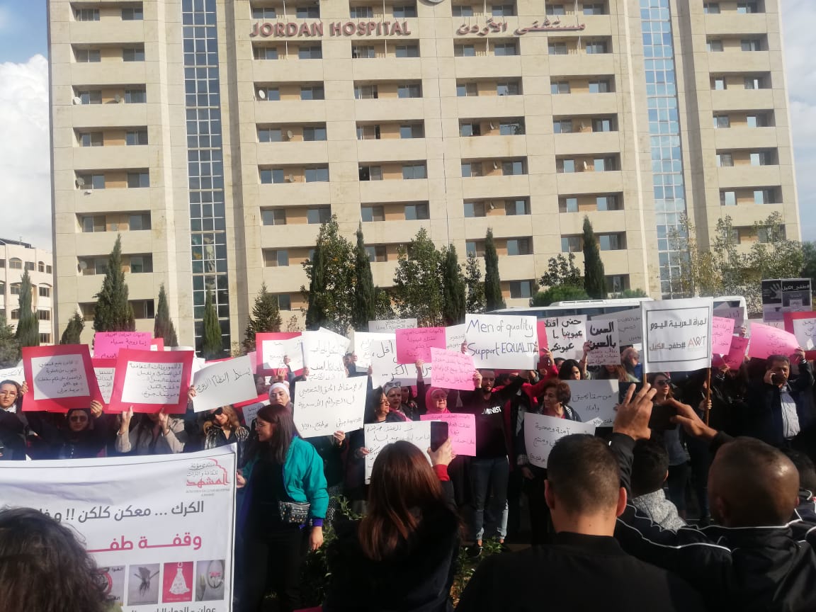 تجمعت عشرات السيدات عصر السبت، في إعتصام قرب دار رئاسة الوزراء، بالعاصمة عمان، تضامناً مع السيدة فاطمة ابو عكليك، التي تعرضت لإعتداء وحشي من زوجها في جرش، قبل ايام.