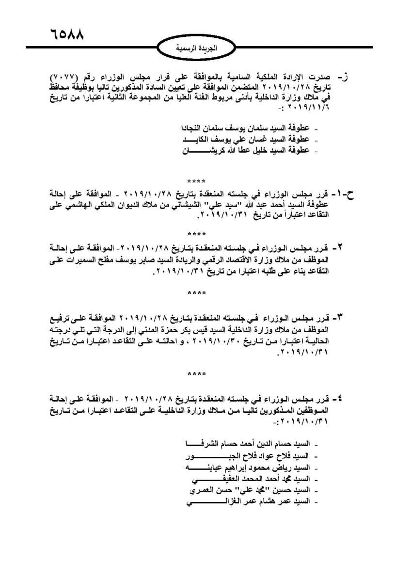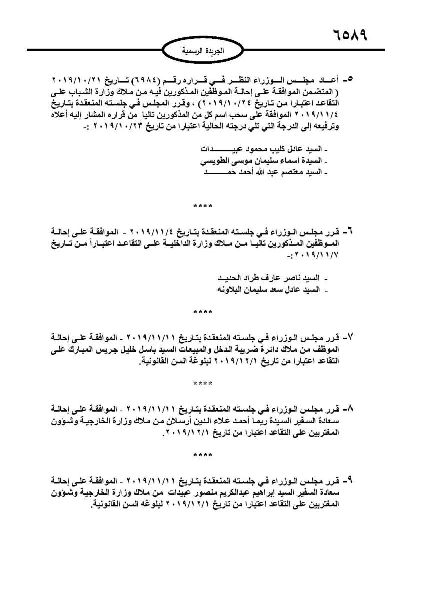 أحداث اليوم - قرر مجلس الوزراء إحالة موظفين في عدد من الوزارات والدوائر إلى التقاعد.
