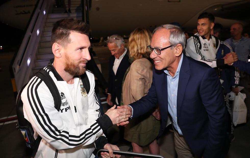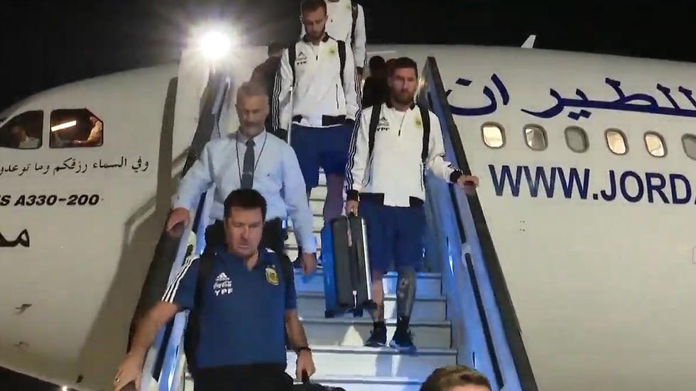 ميسي وبعثة الارجنتين أثناء هبوطها للأراضي المحتلة