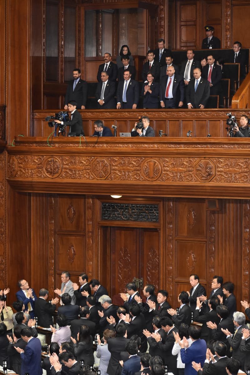 وفي ختام الزيارة أكد الطراونة ورئيس مجلس النواب الياباني على إدامة التعاون والتنسيق البرلماني المشترك، وتبادل الخبرات، وشددا على أهمية تهيئة الأرضية التشريعية المناسبة في كلا البلدين من أجل تحقيق الأهداف المرجوة في مجال الاستثمار، وزيادة التعاون والتبادل التجاري بين البلدين.