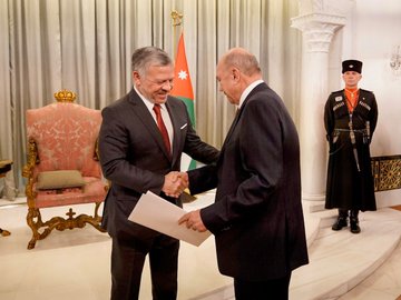 مولاي صاحب الجلالة،يمضي الأردن بثبات على مواقفه تجاه أمتيه العربية والإسلامية وعلى رأسها قضيتنا المركزية - قضية فلسطين، التزاما بمبادئ القانون الدولي وقرارات الشرعية الدولية مدافعا عن حق الأشقاء الفلسطينيين في قيام دولتهم المستقلة على ترابهم الوطني، وعاصمتها القدس الشريف، ولن يقبل الأردن الذي يقوده ملك شجاع، بأي تغيير على واقع الحرم القدسي والمقدسات الإسلامية والمسيحية التي تحملون أمانة الوصاية عليها متمسكين بإرثكم الشرعي والتاريخي نيابة عن العالم أجمع في الدفاع عنها وحمايتها من أي عبث بواقعها القانوني والتاريخي، رغم تعاظم الضغوط وتبدل الأحلاف في محيط يضج بالصراعات.