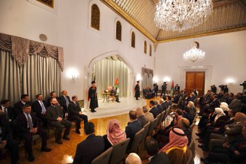 يمضي الأردن بثبات على مواقفه تجاه أمتيه العربية والإسلامية وعلى رأسها قضيتنا المركزية - قضية فلسطين، التزاما بمبادئ القانون الدولي وقرارات الشرعية الدولية مدافعا عن حق الأشقاء الفلسطينيين في قيام دولتهم المستقلة على ترابهم الوطني، وعاصمتها القدس الشريف، ولن يقبل الأردن الذي يقوده ملك شجاع، بأي تغيير على واقع الحرم القدسي والمقدسات الإسلامية والمسيحية التي تحملون أمانة الوصاية عليها متمسكين بإرثكم الشرعي والتاريخي نيابة عن العالم أجمع في الدفاع عنها وحمايتها من أي عبث بواقعها القانوني والتاريخي، رغم تعاظم الضغوط وتبدل الأحلاف في محيط يضج بالصراعات.