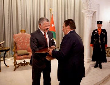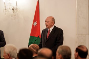 وأضاف "اسمح لي يا سيدي أن أتلو على مسامعكم الكريمة ما يدور في وجداني ووجدان كل أردني وأردنية تجاه مليكنا المفدى: يا صاحب التاج روحي تفتدي التاجا، ما زلت رغم ظلام الليل وهاجا.... فاعبر بنا البر إنا سوف نعبره، واعبر بنا البحر نغدو فيه أمواجا".