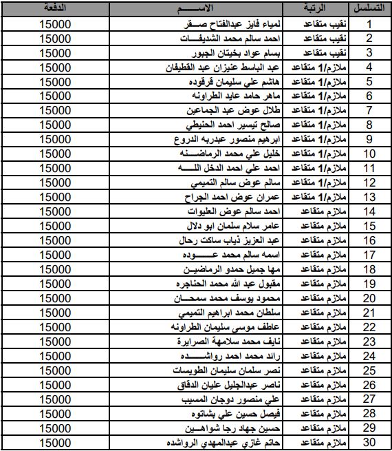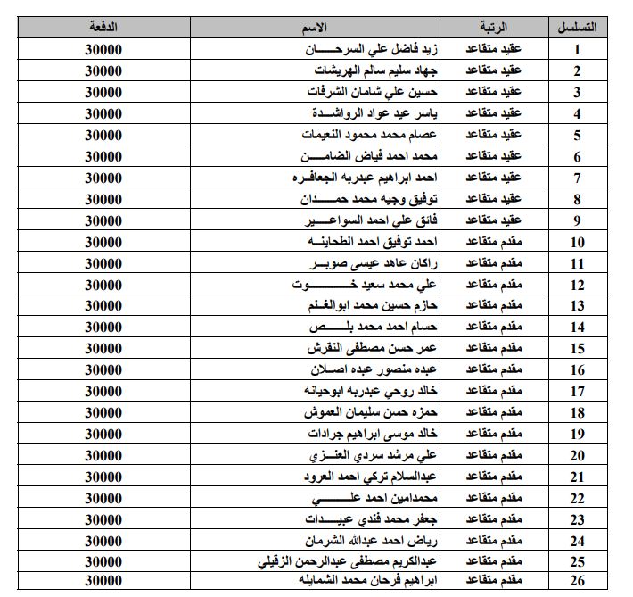 أحداث اليوم - أعلنت القيادة العامة للقوات المسلحة الاردنية-الجيش العربي/مديرية مؤسسة الاسكان والاشغال العسكرية بأن الضباط وضباط الصف والافراد المذكورين تالياً قد دنت اقدميتهم للحصول على قرض من صندوق الاسكان العسكري وعليهم المراجعة خلال ساعات الدوام الرسمي مصطحبين معهم الوثائق التالية :