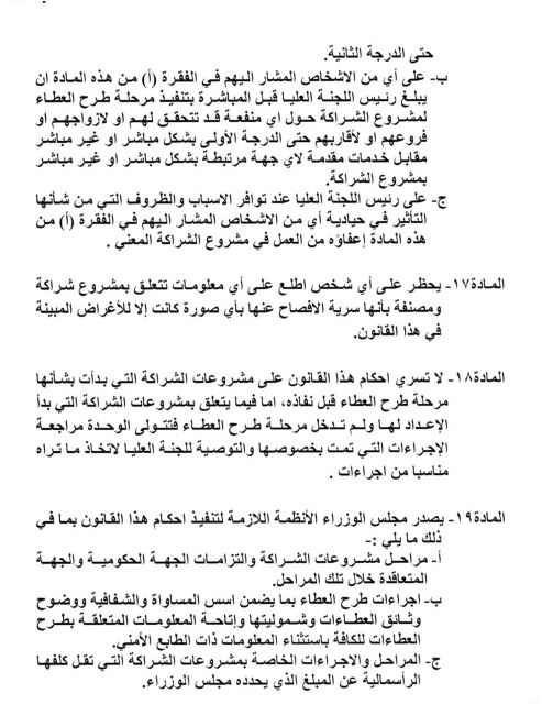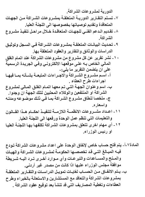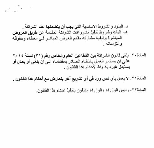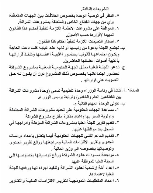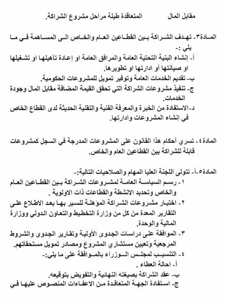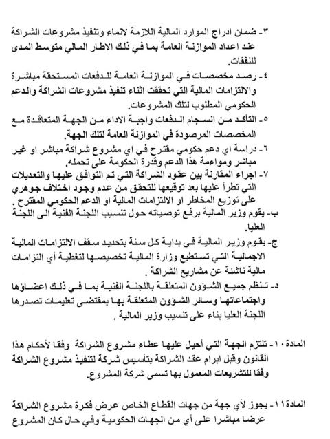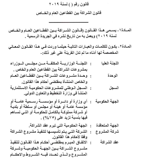 نص مشروع قانون الشراكة بين القطاعين العام والخاص
