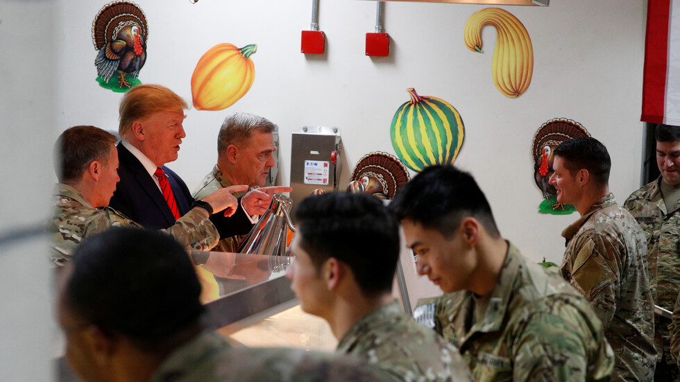 وزع الرئيس الأمريكي، دونالد ترامب، أطعمة العيد على مجموعة عسكريين أمريكيين في أفغانستان بمناسبة عيد الشكر الذي تحتفل به الولايات المتحدة.