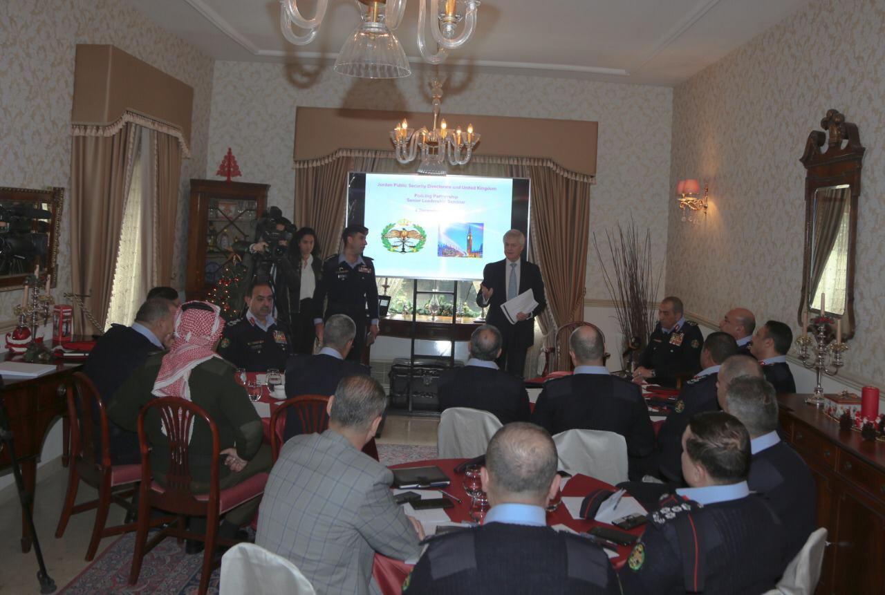 واشتملت ورشة العمل التي حضرها عدد من قادة امن الاقاليم ومدراء عدد من الوحدات الشرطية وفريق العمل البريطاني على عدة جلسات حوارية لأوراق نقاشية قدمها متخصصون من الجانبين تضمنت تعزيز سبل التعاون في مجالات مهمة أبرزها التدريب ونقل الخبرات بين الطرفين بالإضافة الى بحث اليات تنفيذ برنامج الشراكة الأردني البريطاني من اجل تعزيز العمل الامني والارتقاء بمستوى الخدمة المقدمة لكل من يقيم على أرض المملكة .