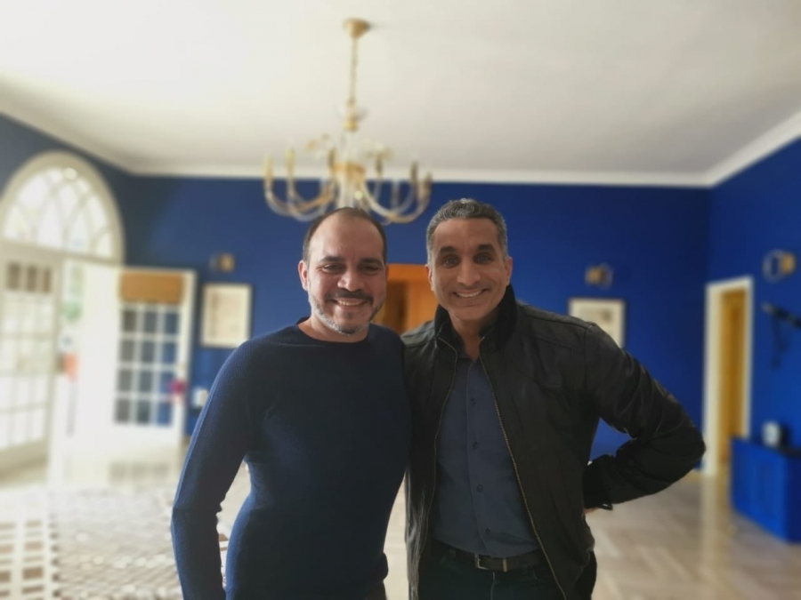 وكتب الأمير علي على الصورة التي نشرها عبر حسابه على موقع التواصل الاجتماعي "فيسبوك"، "مع أخي باسم يوسف".