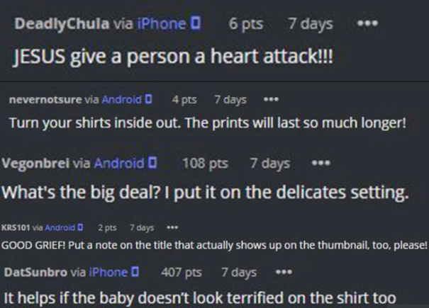 هذا بالضبط ما حدث لأحد مستخدمي موقع "تويتر" قبل بضعة أسابيع، لكن لحسن الحظ لم يكن طفله الفعلي داخل الغسالة، ولكن كان هناك قميص طبع عليه وجه الطفل هذا.
