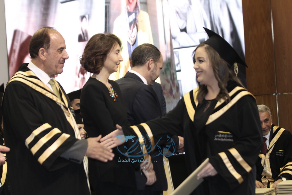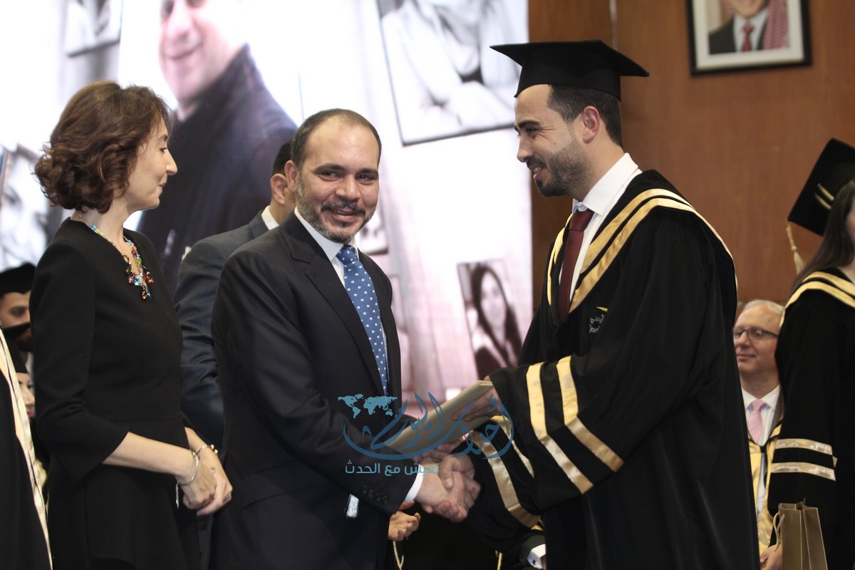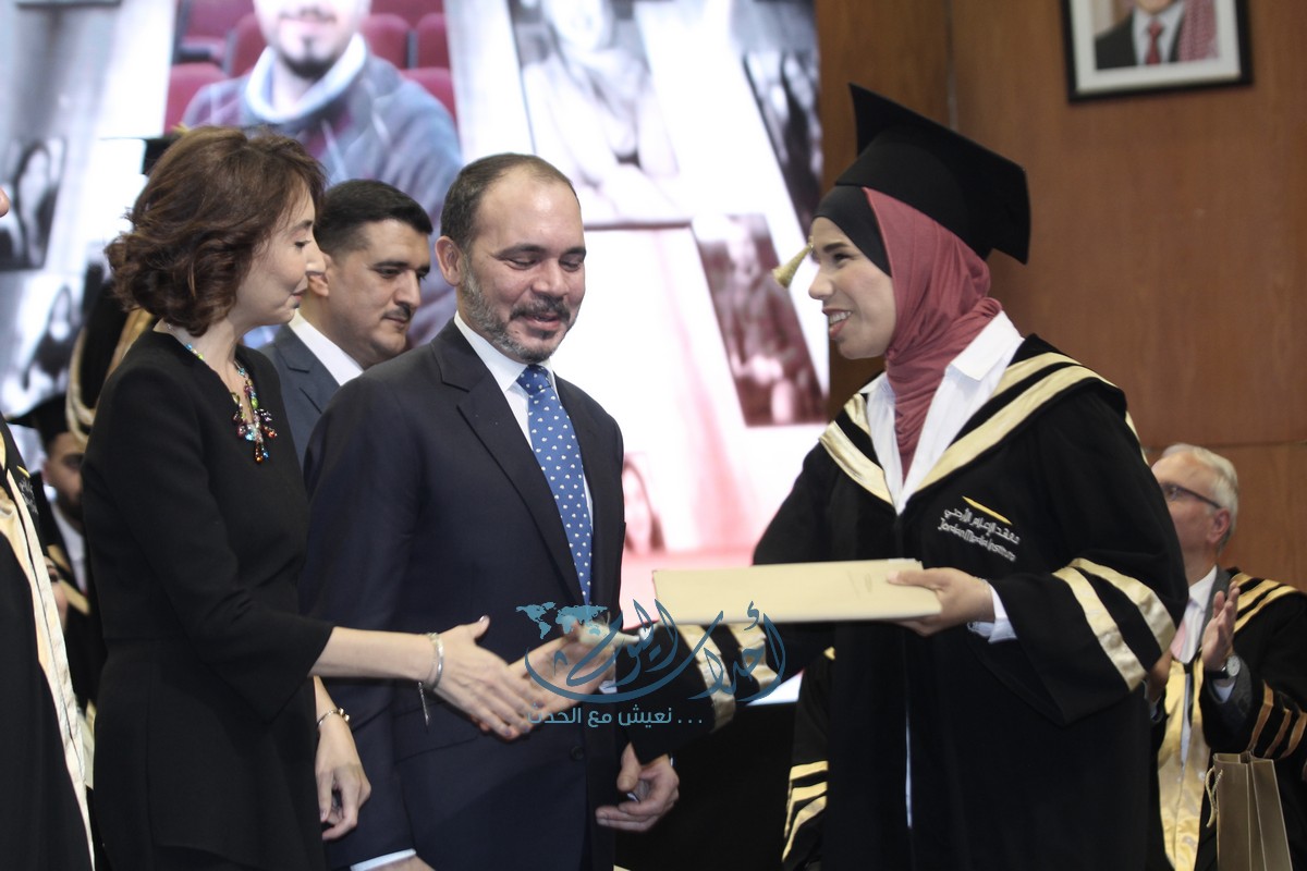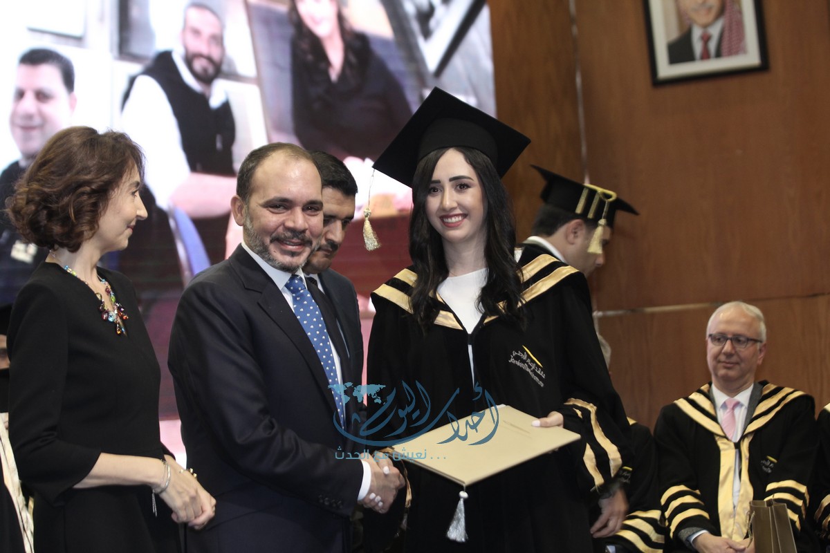 وسلم الأمير علي بن الحسين، والأميرة ريم علي، ورئيس الجامعة الأردنيّة الأستاذ الدكتور عبد الكريم القضاة، وعميد معهد الاعلام الدكتور زياد الرفاعي الشهادات للخريجين.