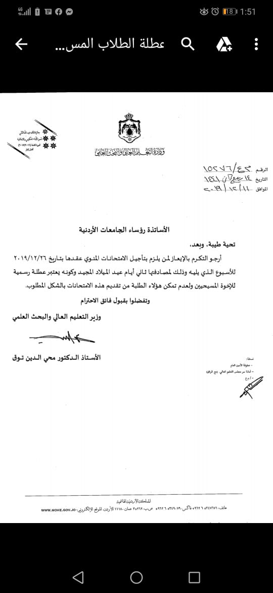 التعليم العالي تعمم بتأجيل الامتحانات الجامعية - وثيقة