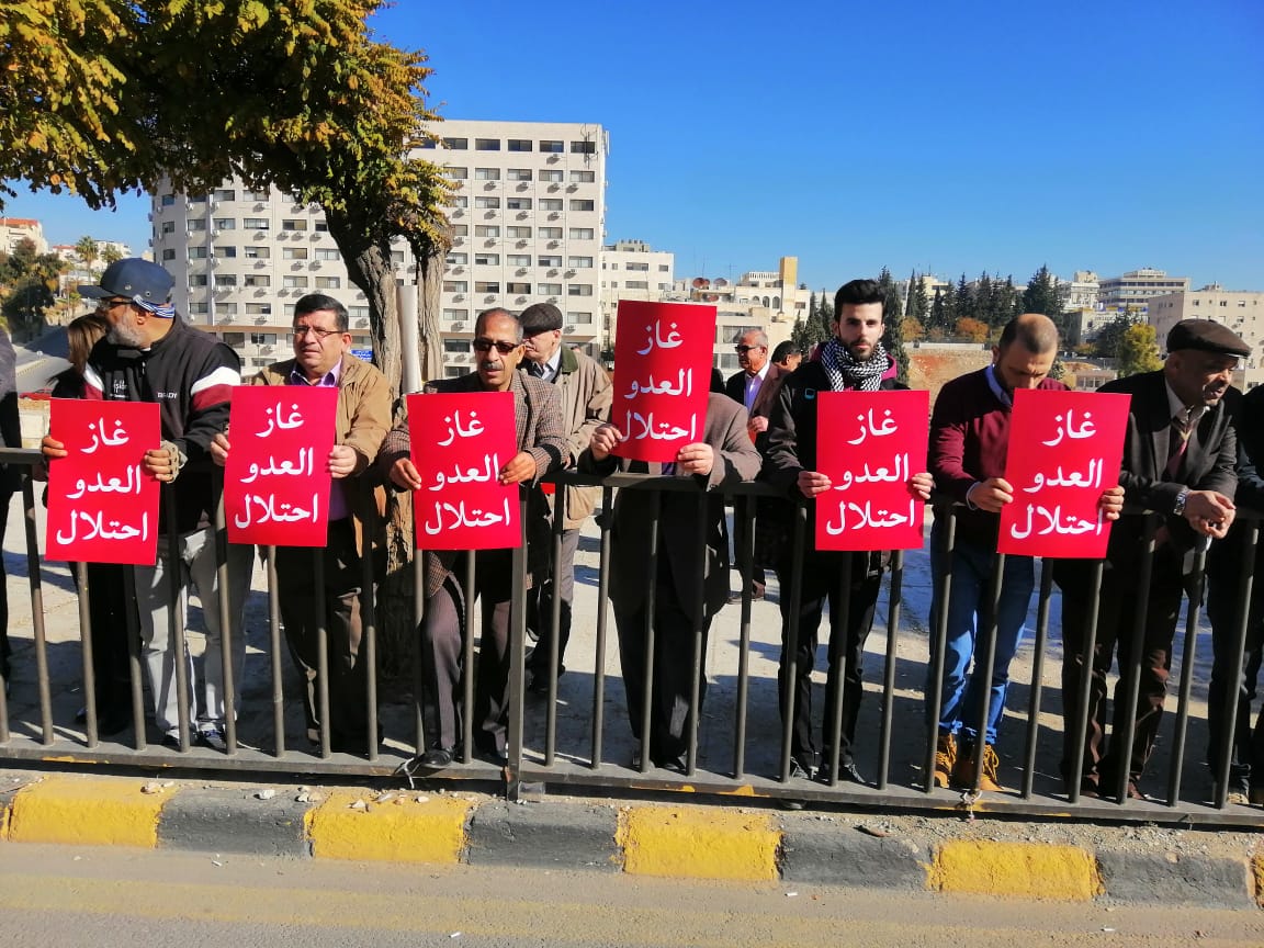 أحمد حمدان - نفذت الحملة الوطنية لإسقاط اتفاقية الغاز مع الكيان الصهيوني “غاز العدوّ احتلال”، صباح الأحد، وقفة احتجاجية أمام مجلس النواب لمطالبته بالقيام بدوره الدستوري والتشريعي والرقابي بإسقاط اتفاقية الغاز مع الاحتلال الإسرائيلي قبل فوات الأوان ودخولها حيّز التنفيذ بداية العام 2020.