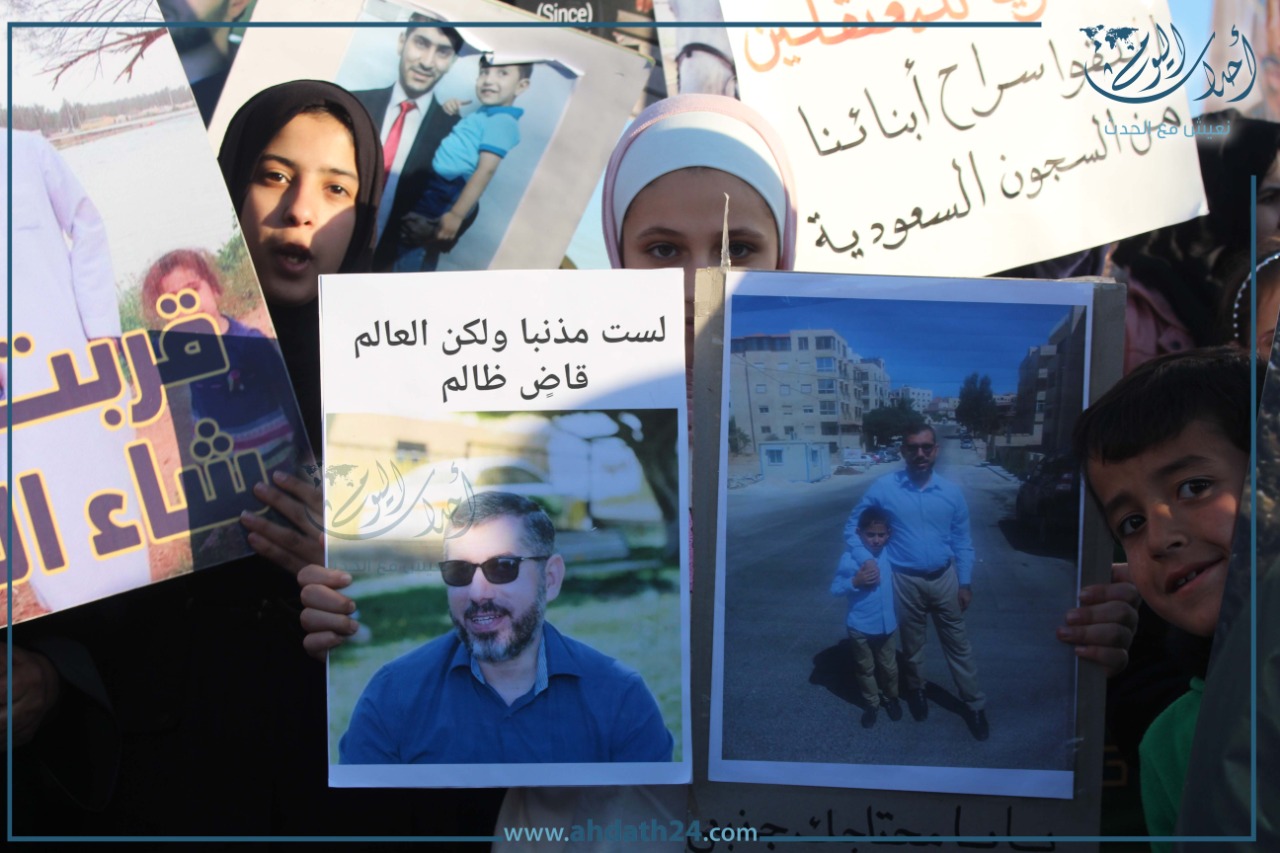 أحمد حمدان - نفذ أهالي المعتقلين الأردنيين في السعودية، اليوم الاثنين، وقفة أمام السفارة السعودية في عمّان، للمطالبة بالإفراج عن أبنائهم المعتقلين لدى السلطات السعودية.