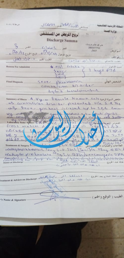 ووفق التقرير الطبي الذي حصلت عليه "أحداث اليوم" فإنّ عدة مستشفيات أحدها يتبع القطاع الخاص رفضت استقبالها بسبب عدم توفر "أسرة" رغم طلب مستشفى السلط الحكومي تحويلها إلى مستشفيي البشير والأمير حمزة.