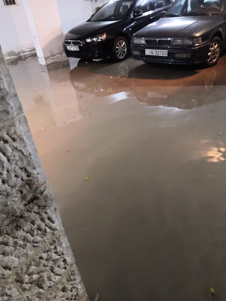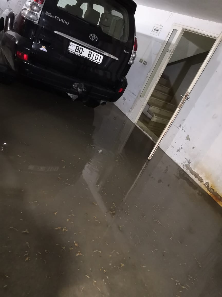 أحداث اليوم - تعرضت منطقة العوجانية في خلدا بالعاصمة عمان لغرق كراجات احدى العمارات بالمياه. وحاولت شركة مياهنا فتح المجاري التي اغلقت بسبب كثافة الامطار ورجوع المياه للكراجات.
