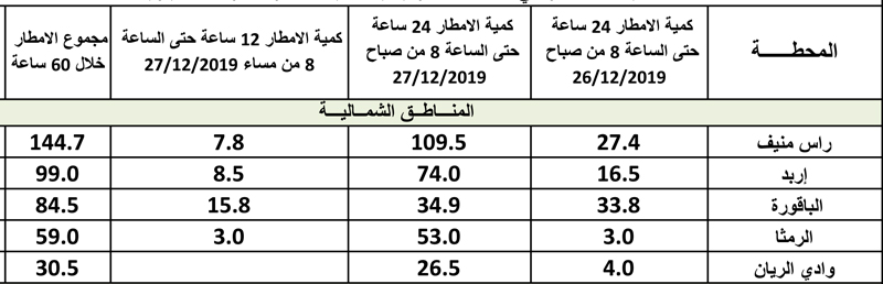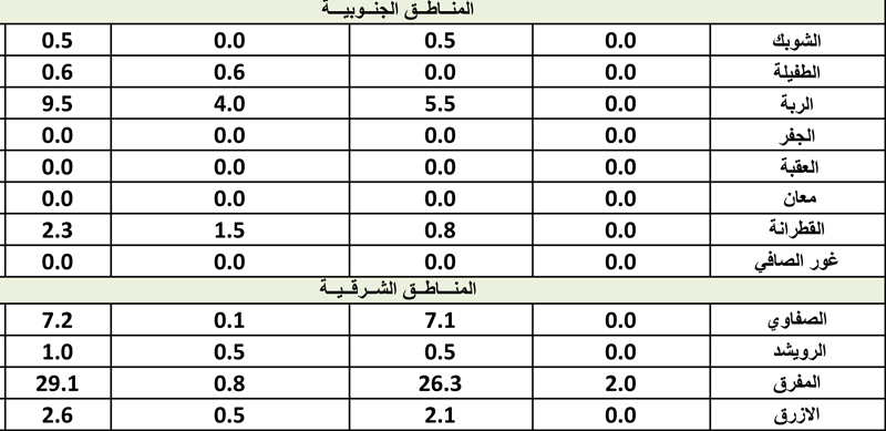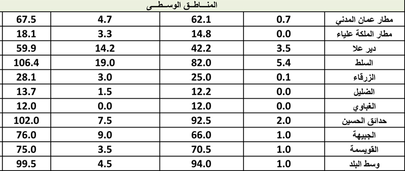 أحداث اليوم - كشفت دائرة الأرصاد الجوية عن كميات الأمطار التي هطلت على المملكة خلال المنخفض الأخير وحتى الساعة 8 من مساء الجمعة.وتاليا كميات الأمطار: