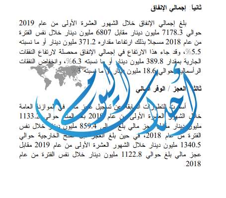 وبحسب النشرة التي اطلع عليها " أحداث اليوم" بلغ ارتفاع عجز الموازنة خلال الاشهر العشرة الاولى من 2019 عن ذات الفترة من عام 2018 ما قيمته 273 مليونا و800 ألف دينار.