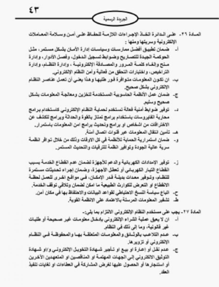 وبحسب التعليمات الجديدة لا يمكن استخدام النظام الالكتروني شريطة تثبيت الإعدادات الأساسية له، علماً أنّ التعليمات الجديدة تدخل حيز التنفيذ بعد نشرها في الجريدة الرسمية بـ24 ساعة.