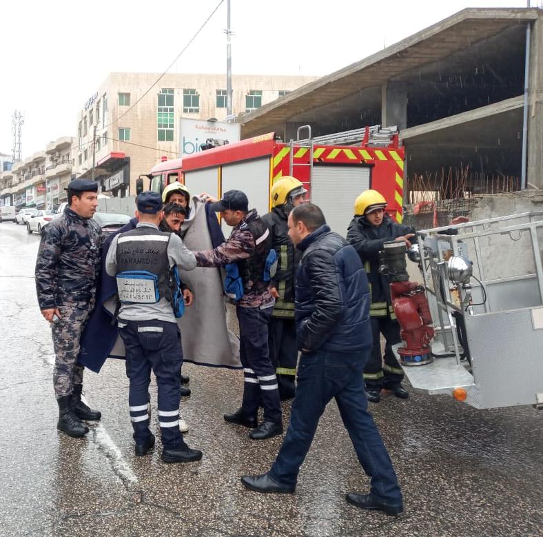 أحداث اليوم - تمكنت كوادر الانقاذ والاسعاف في الدفاع المدني، من انقاذ شخص، السبت، تعطلت به رافعة أثناء قيامه بعمليات الصيانة لواجهة إحدى المباني في منطقة خلدا.