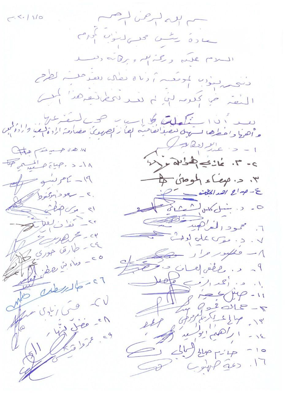 وفي ما يلي نص المذكرة وأسماء النواب الموقعين