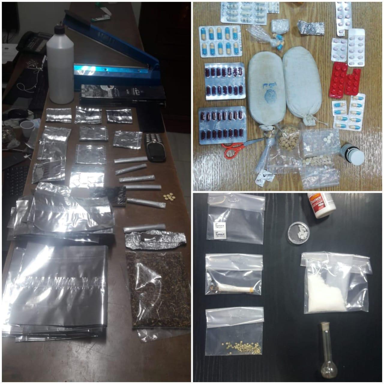 واضاف البيان انه كان ابرز تلك القضايا في محافظة اربد حيث دوهم مساء الامس احد المنازل بعد التأكد من وجود شخص مطلوب خطير بحقه 14 طلباً امنياً بقضايا مخدرات وحمل السلاح واطلاق العيارات النارية ، حيث القي القبض عليه بعد ان ابدى مقاومة شديدة وضبط عدد من الأشخاص برفقته والتحقيق جارٍ معهم،وبتفتيش المنزل عثر داخله على 6 كغم من مادة الحشيش ، و8 اكياس بداخلها بودرة الحشيش الصناعي ، وكمية من الحبوب المخدرة ومركبة مطلوبة ولوحات مركبات مزورة