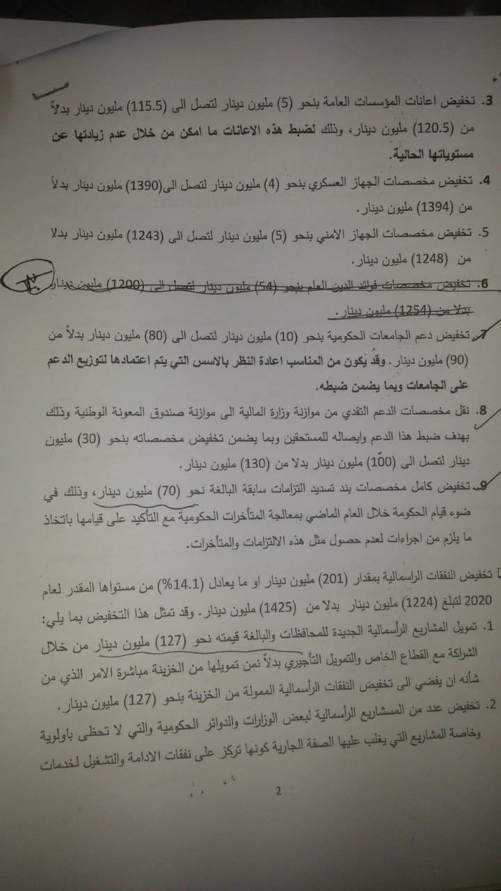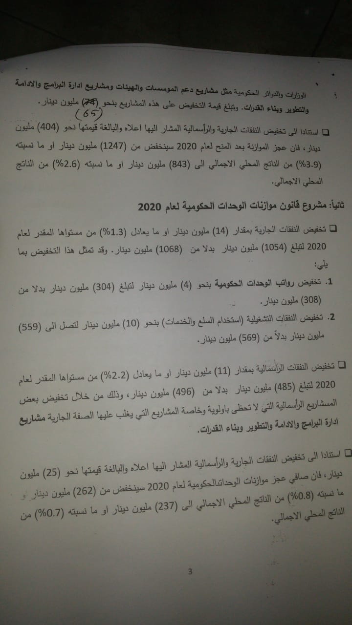 أحداث اليوم - اوصت اللجنة المالية في مجلس النواب بمسودة قرارها حول مشروعي قانوني الموازنة العامة والوحدات الحكومية لعام 2020 بخفض 404 ملايين دينار من نفقات الحكومة.