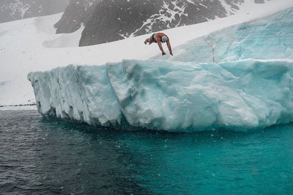 وأظهرت صور التقطت للويس بوغ (50 عاماً) وهو يغوص في المياه الجليدية للقطب الجنوبي لتحقيق هذا الإنجاز الرائع، وبلغت درجة حرارة المياه التي سبح فيها لمدة بلغت 8 دقائق، بضع درجات تحت الصفر.