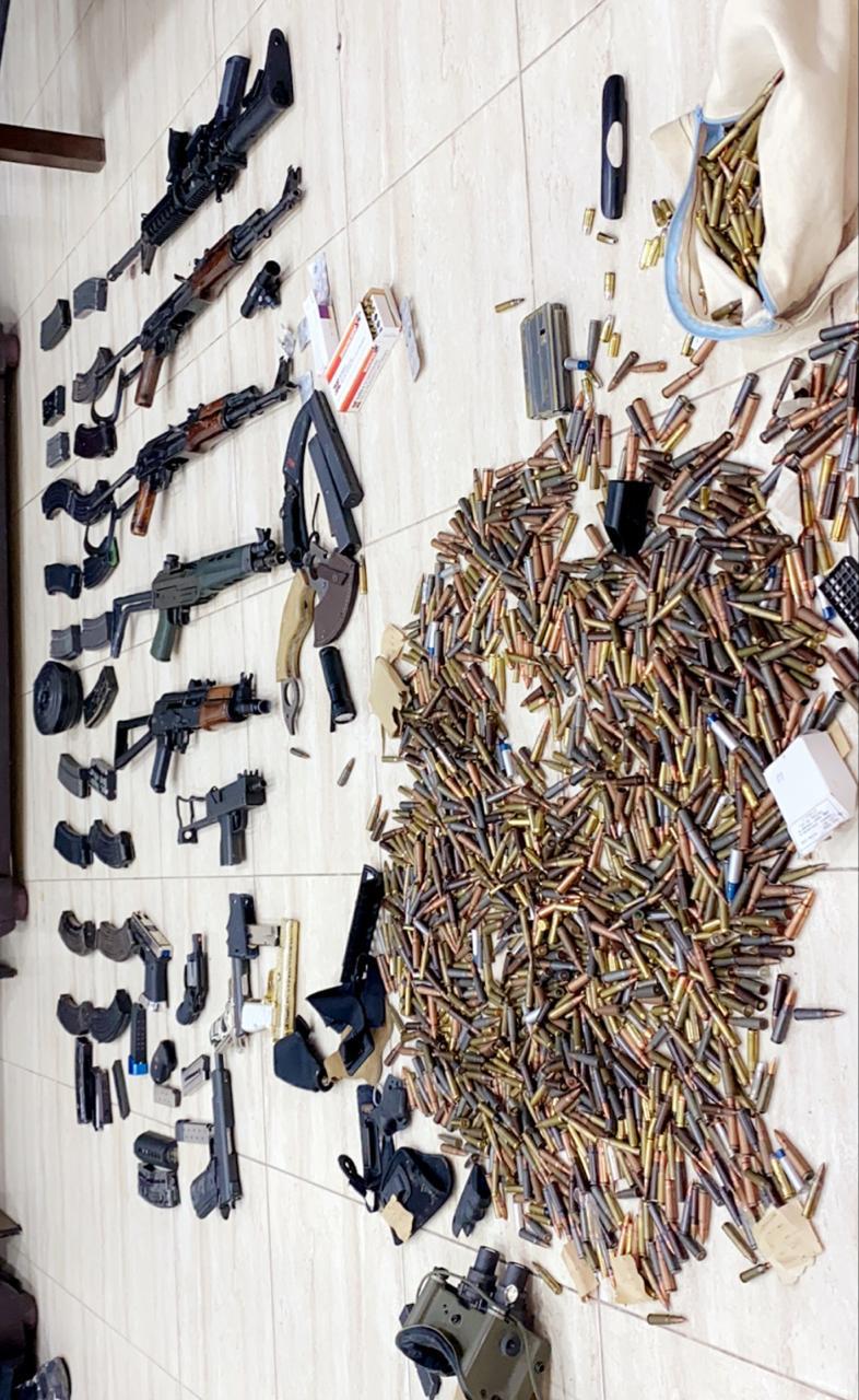 واضاف الناطق الاعلامي انه عثر داخل المنزل بعد تفتيشه على ١١ سلاحاً نارياً خمسة منها اوتوماتيكية بالاضافة الى كميات كبيرة من الذخيرة وبوشرت التحقيقات.