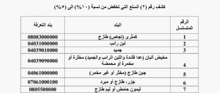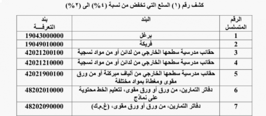 أحداث اليوم - دخل قرار مجلس الوزراء تخفيض الضريبة العامة على المبيعات على السلع الأساسية والغذائية حيز التنفيذ بحيث يخضع بعضها لنسبة 2% بدلا من 4%، فيما خضع بعضها الآخر إلى تخفيض بنسبة 5% بدلا من 10%.
