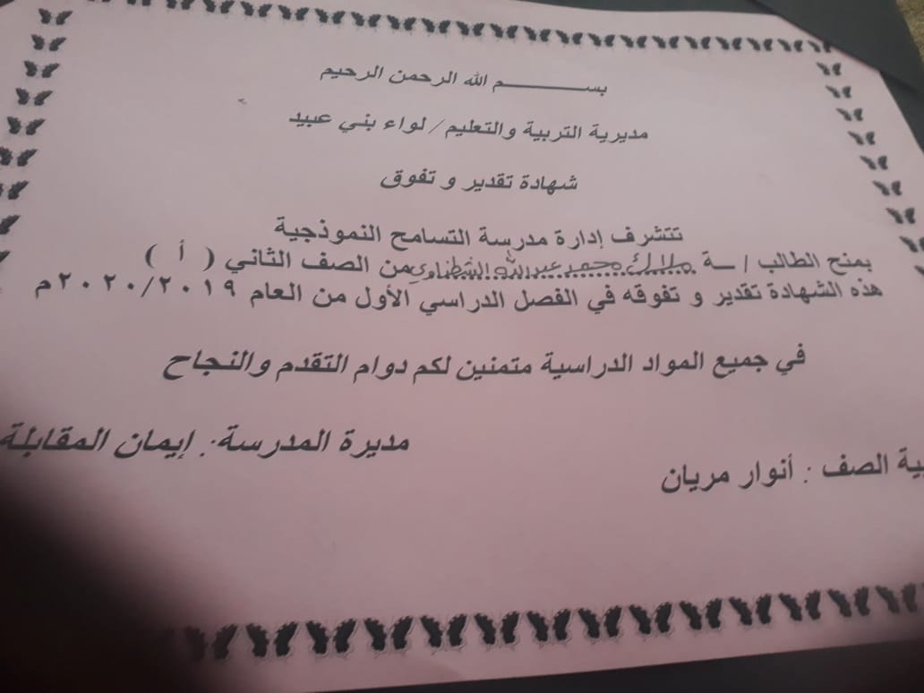 أحداث اليوم - تتقدم عائلة الحاج عبد الله عبد السلام الشطناوي من ابنتهم "ملاك محمد شطناوي" بالتهنئة لتفوقها ونجاحها الكبير في الدراسة.