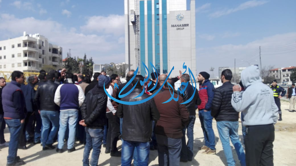 ياسر شطناوي - نفذ العشرات من موظفي شركات المناصير للحديد والصلب، صباح الثلاثاء، اعتصاماً أمام مركز الشركة في منطقة الدوار الثامن بالعاصمة عمان،احتجاجاً على عدم صرف رواتبهم لشهر كانون ثاني الماضي وراتب الثالث عشر الإضافي من عام 2018.