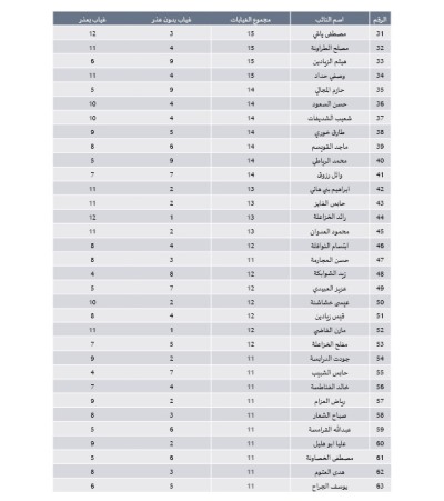 وتاليا اسماء النواب الأكثر غيابا: