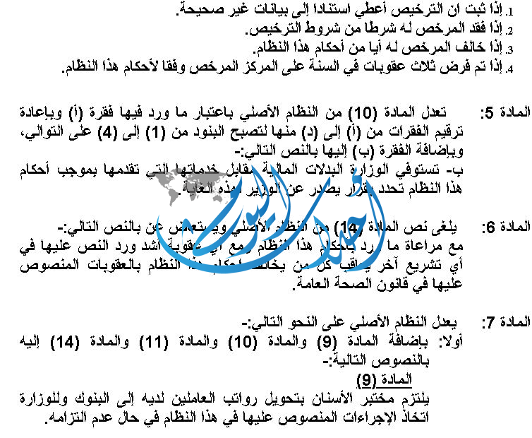 اسم المسودة : نظام معدل لنظام ممارسة مهنة فنيي الأسنان