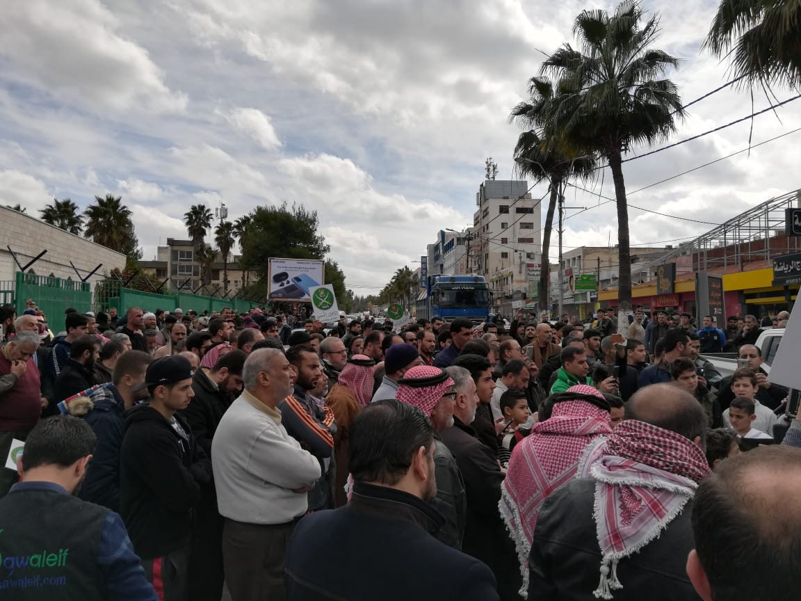 أحداث اليوم - نظمت الفعاليات الشعبية في محافظة إربد بعد صلاة الظهر مسيرة حاشدة رفضاً لصفقة القرنو، تأكيداً على لاءات الملك الثلاث.