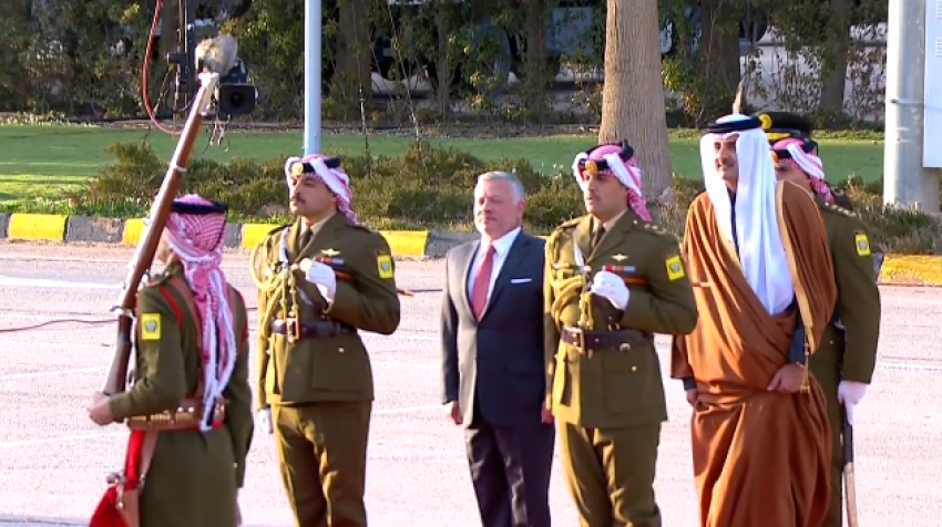 أحداث اليوم - استقبل الملك عبدالله الثاني الشيخ تميم بن حمد آل ثاني أمير دولة قطر الشقيقة الذي وصل إلى عمان اليوم الأحد، في زيارة رسمية للمملكة.