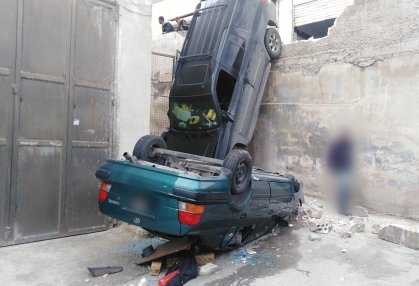 أحداث اليوم - وقع اليوم حادث تصادم وسقوط لمركبتين في منطقة ماركا مقابل مصنع الإسفنج داخل احد مراكز تصليح السيارات، حيث أدى ارتكاب خطأ عدم أخذ الاحتياطات اللازمة من قبل سائق احدى المركبتين المشتركتين بالحادث إلى اصطدامها بمركبة اخرى متوقفة داخل كراج مركز الميكانيك، ومن ثم اندفاعهما نحو سور المحل وسقوطهما من مرتفع