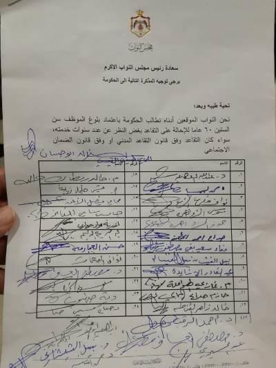 أحداث اليوم - تبنى النائب عبدالله العكايلة مذكرة نيابية موقعة من 42 نائباً تطالب الحكومة بعدم إحالة الموظف على التقاعد قبل بلوغه سن الستين عاماً بغض النظر عن سنوات الخدمة.